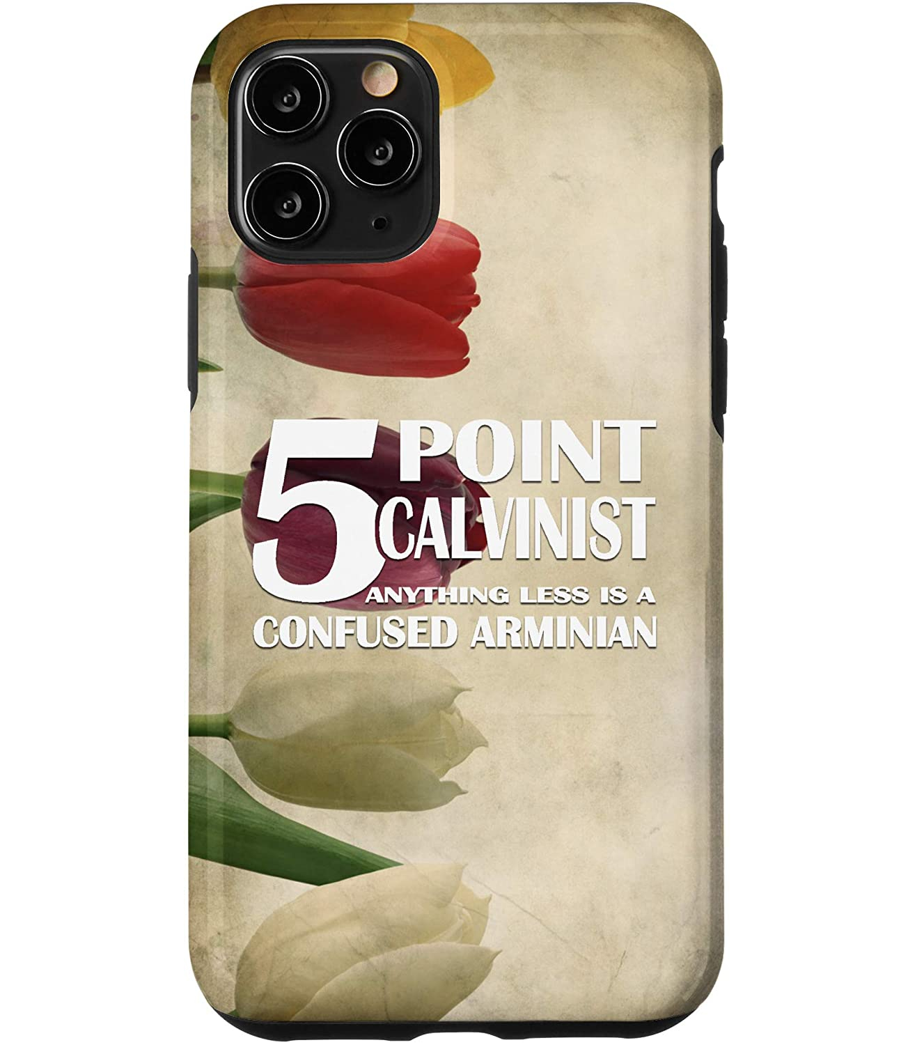 5 Point Calvinist iPhone Case $19.99reads: 5 Point Calvinist - Anything less is a confused Arminian Available for many newer iPhones