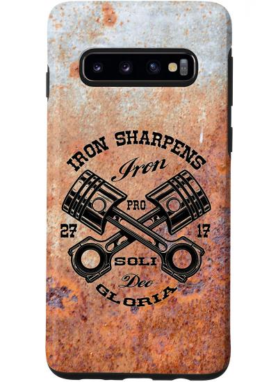 Iron sharpens iron Samsung Case $19.99Iron sharpens iron Proverbs 27:17 in a design that resembles a garage logo Available for many newer Samsung Phones